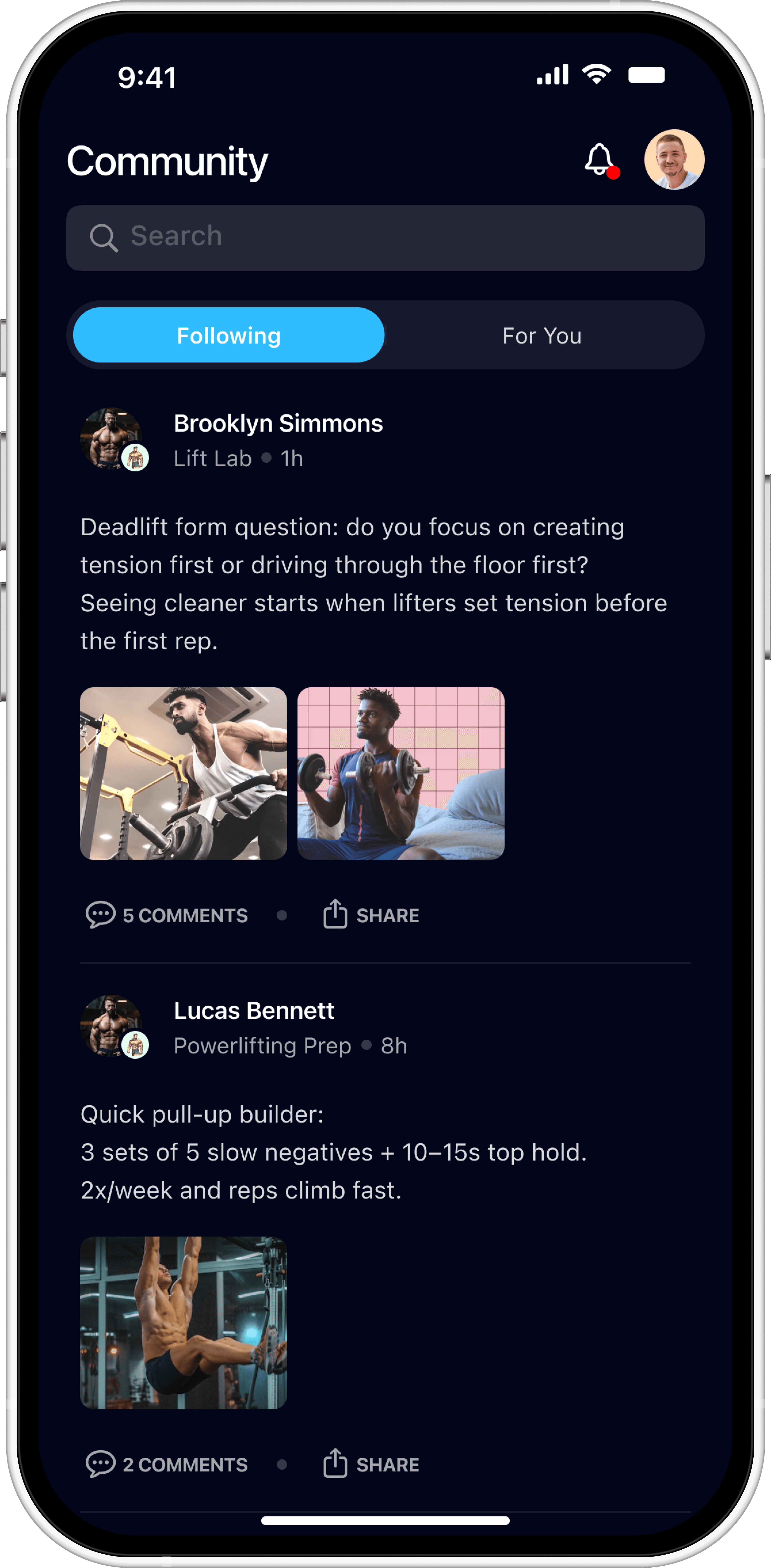 The planned Community feature needed initial UX direction that fit the established navigation.